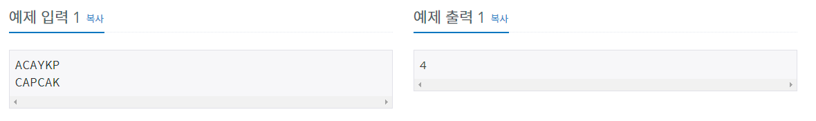 첫째 줄에 입력으로 주어진 두 문자열의 LCS의 길이를 출력한다.