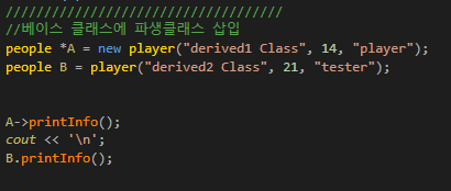 앞서 말씀드린것과 같이 객체를 new로 생성한 것은 파생 클래스의 메소드가 호출되고 아닌 것은 기초 클래스의 메소드가 실행되었습니다.